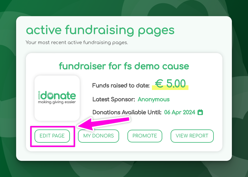 - Login to your iDonate.ie account – https://www.idonate.ie/userlogin.html