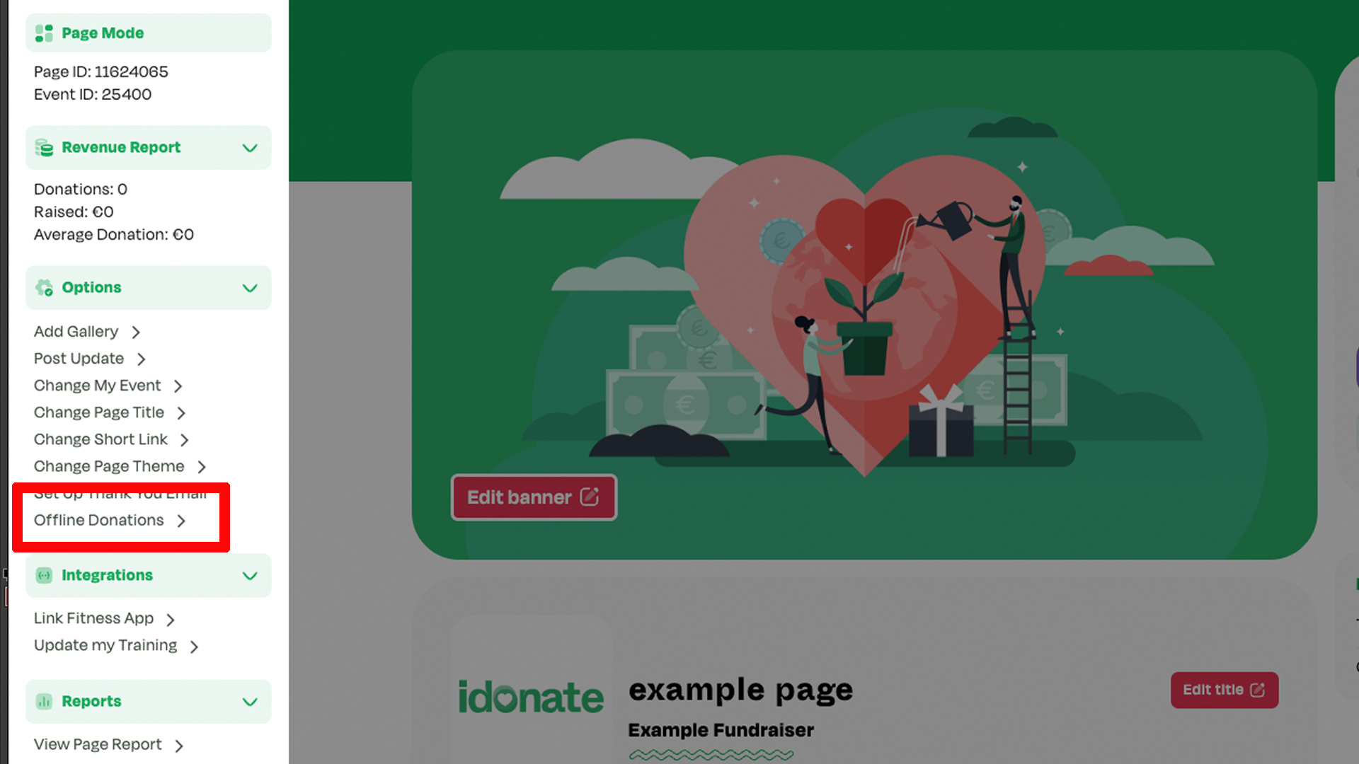 When you click Offline Donations here, a menu will pop up showing any offline donations already on the page.