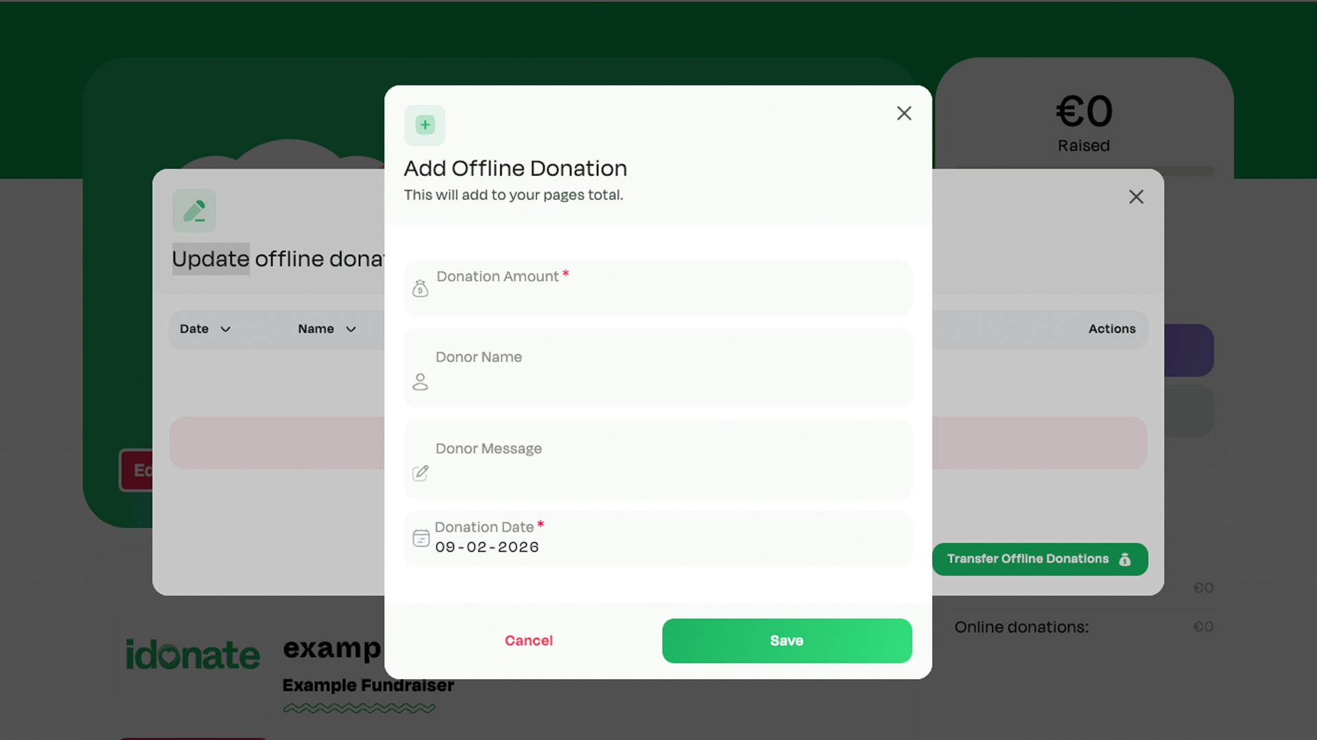 As mentioned, the purpose of an Offline Donation is to represent donations made outside of iDonate.