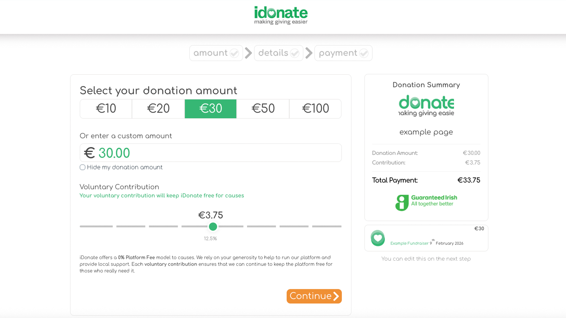 The donation will appear instantly on your list of donors, and the amount will be added to the total.