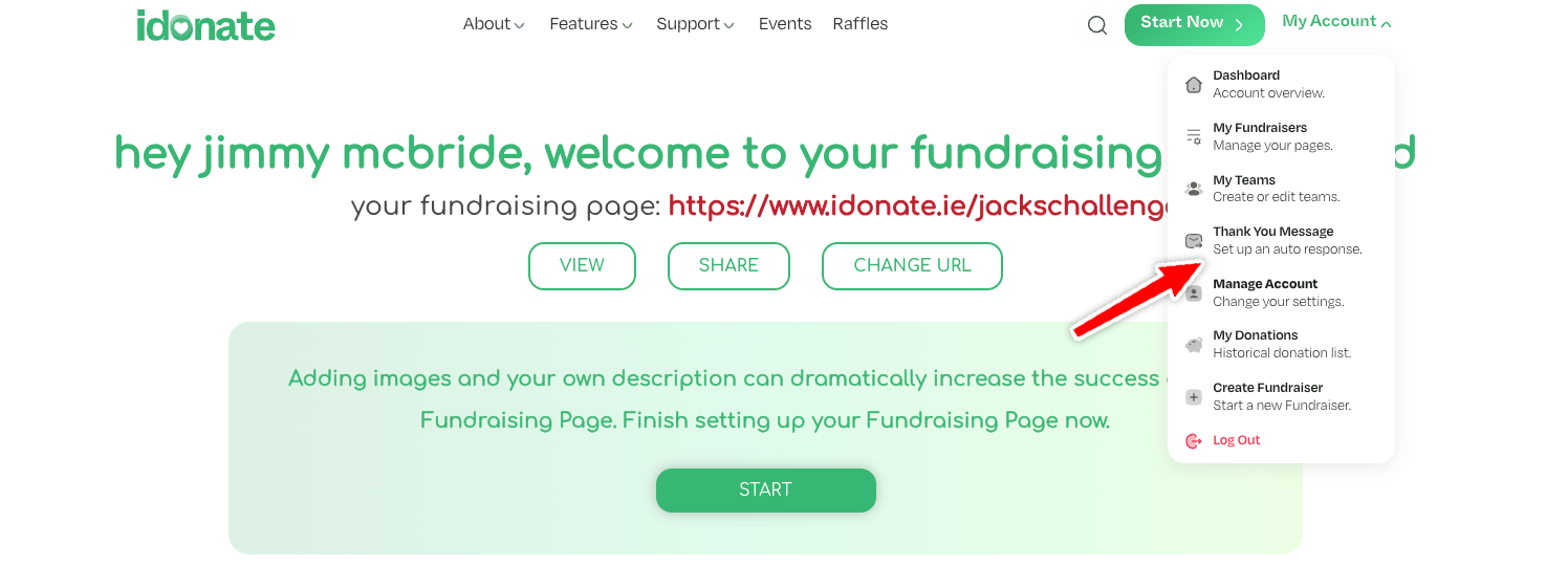 - Login to your account dashboard at https://www.idonate.ie/userlogin.html