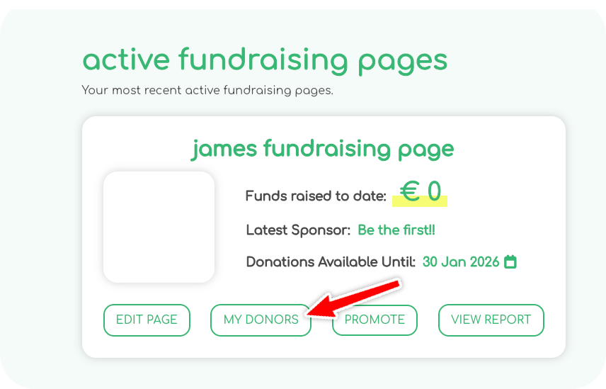 - Select "My Donors" under your fundraising page,